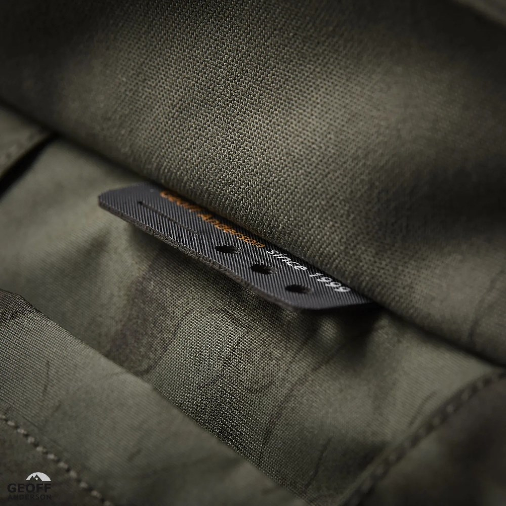 Voděodolné při běžném dešti (ne však při ponoření). Vnitřní podšívka je částečně voděodolná, což zabraňuje prosakování – je třeba počítat s kondenzací. - 2. Levá kapsa s vestavěným síťovým pouzdrem.