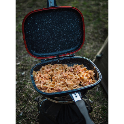 Akční set, který obsahuje oboustrannou pánev s nepřilnavým povrchem Non-Stick a nerezový thermo hrnek p obsahu 400ml. Parádní dárek pro příznivce pobytu u vody a v přírodě. Oboustranná pánvička od Giants fishing s nepřilnavým povrchem Non-Stick , silikonovým těsněním a v krásném designu, je důležitou součástí každého rybáře kuchaře. Vysoce kvalitní hliníkový materiál je ideální na pečení, grilování, opékání či smažení nebo přípravu toastů. Díky vysoce kvalitnímu materiálu se příprava jídla sníží až o dvojnásobek času oproti klasickým pánvím. Vyšší hmotnost pánve je zárukou použití vysoce kvalitních materiálů a navíc se stará o stabilitu na vařiči. Ergonomická rukojeť s magnetickým klipem zaručuje bezpečnost při přenášení a otáčení. Pánvička má navíc jednu stranu mělčí a druhou hlubší, což je ideální pro různorodé pečení a vaření. Specifikace: - průměr 28 cm (rozměry bez rukojeti): 28 x 22 x 5,9 cm - průměr 28 cm (rozměry s rukojetí): 43 x 28 x 5,9 cm - použitý materiál: Non-Stick PTFE materiál známý jako Teflon - magnetický klip pro bezpečnost přenášení a otočení - ergonomická rukojeť - vnitřní silikonové těsnění + 1 navíc - přetlakový otvor - hmotnost: průměr 28 cm – 1,26 kg Hrnek - Dvojitá termoizolační vrstva, která udrží Váš nápoj déle teplý. Víčko je vyrobeno ze silného termoizolačního plastu se silikonovým těsněním. Objem: 400ml Hmotnost: 308g Odkaz na video: http://www.youtube.com/watch?v=xjCwXxNtOGQ