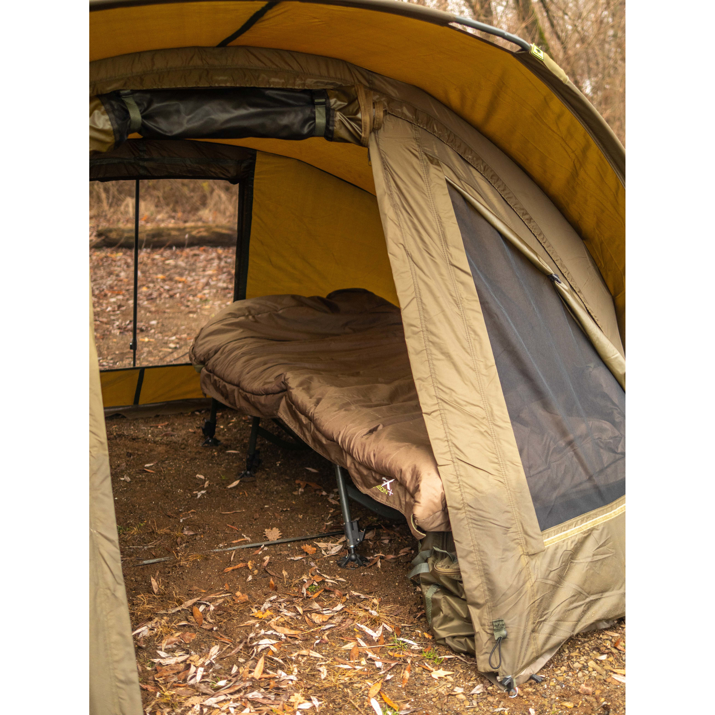 Velmi propracovaný bivak, který byl pečlivě vyvíjen s ohledem na maximální komfort u vody. Velký důraz, byl kladen na maximální odvětrání bivaku, které je velmi důležité v horkých letních měsících. Přístřešek trubkové konstrukce, která se skládá ze tří žeber a o výztuhu se starají rozpěrné tyče. Na tento bivak, byl použit vodě odolný materiál 5 00...