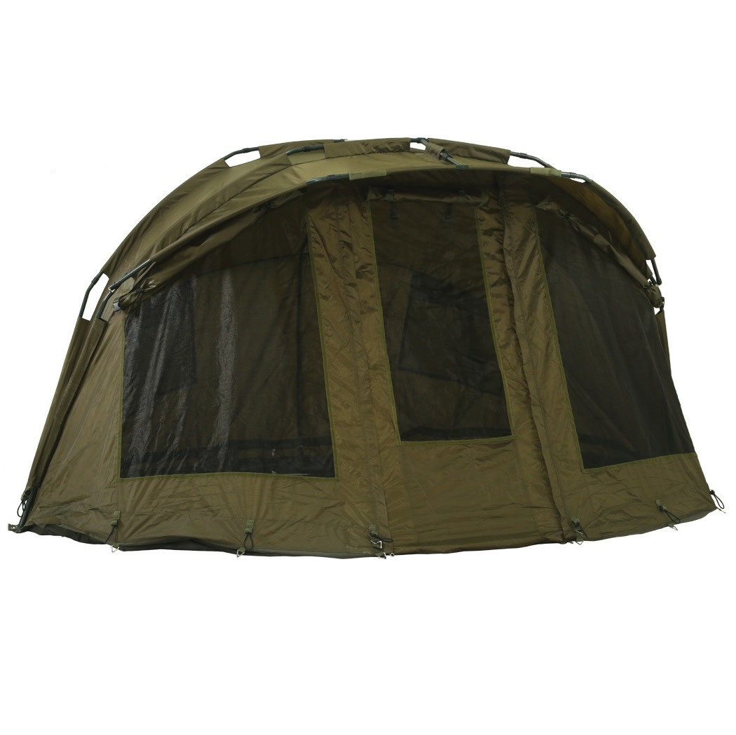 Druhý plášť je v přední části osazen trubkovou výztuhou, která vytvoří praktickou předsíňku. Plášť je vybaven větracím systémem v přední části, které zajistí maximální odvětrání. Přední vchodová část má, tři výměnné panely na suchý zip, celo zakrytá, nebo slídová a moskytiéra. Rozměry: Délka: 320cm Šířka: 310cm Výška: 170cm