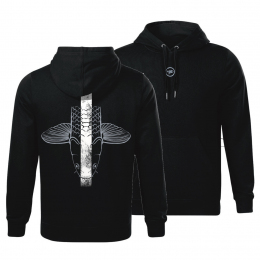 Mikina černé barvy s našim originálním návrhem kapří hlavy. Decentní logo značky na prsou....