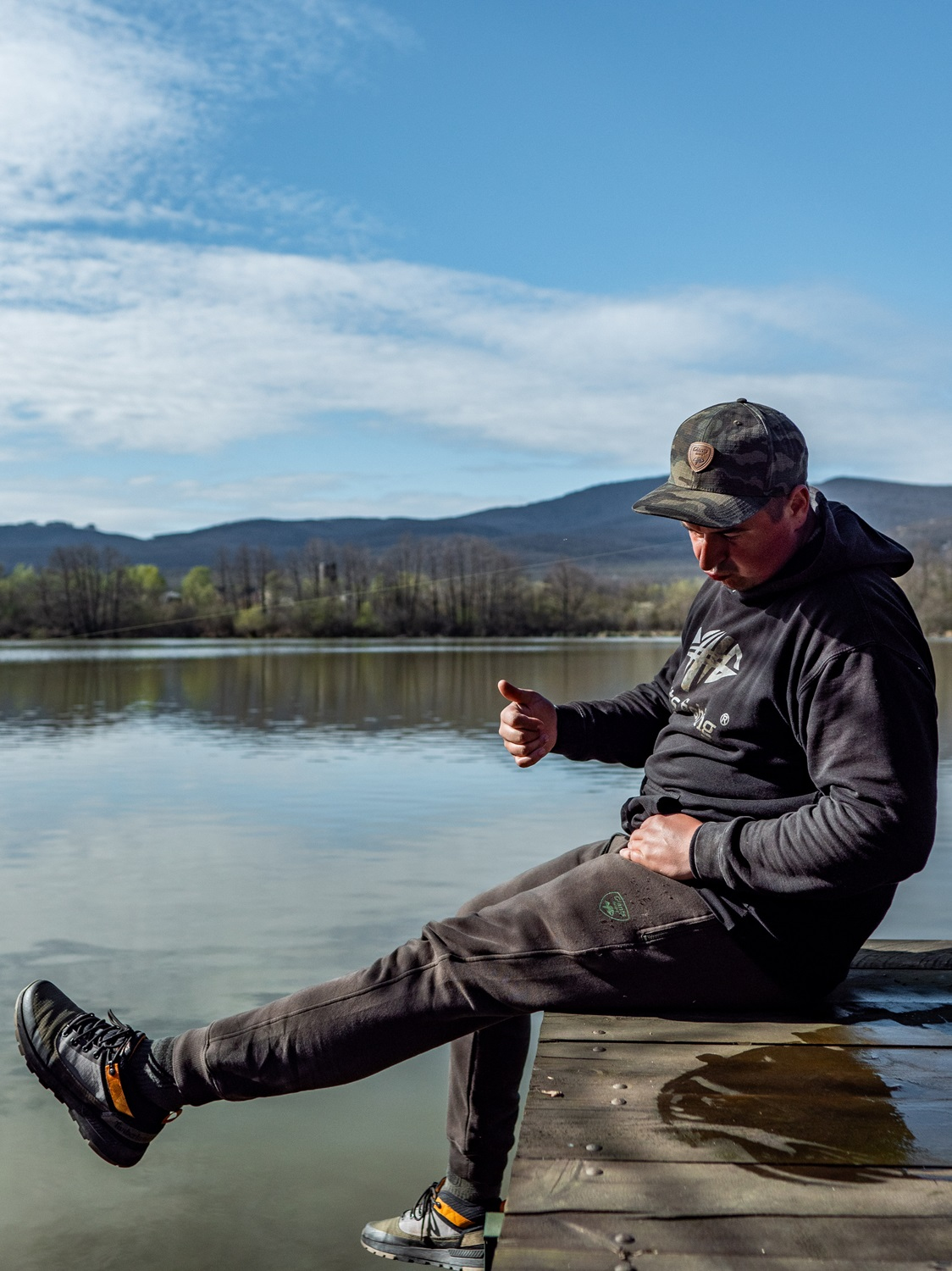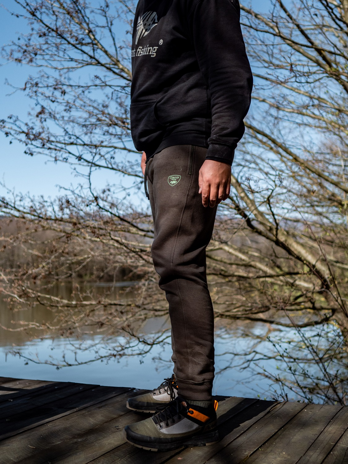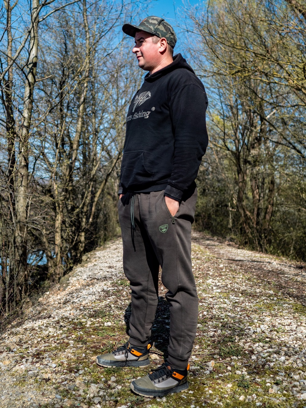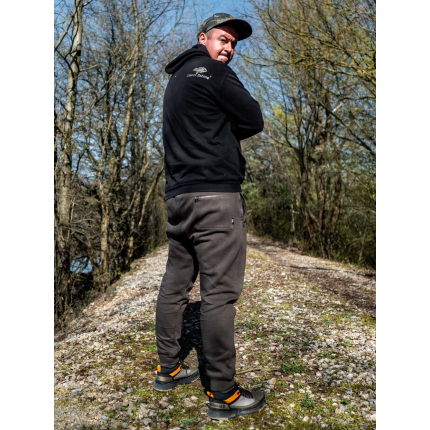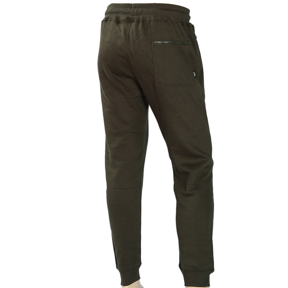 Tepláky moderního střihu v khaki zelené barvě, které mají dvě přední a jednu zadní kapsu. Skvěle padnoucí a pohodlné tepláky, které ocení nejen rybáři. Vyrobeno z materiálu o gramáži 280gsm, která je kombinován z 60% polyester a 40% bavlna. Polyester zajistí lehkost a komfort, zatímco bavlna se postará o prodyšnost a má izolační schopnost. Vrchní lem je elastický a lze ho ještě dotáhnout šňůrkou. Obě boční, tak i zadní kapsa jsou opatřeny zipy, což zabrání nechtěné ztrátě jejich obsahu.