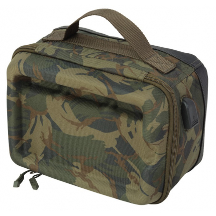 Praktické pouzdro do které bezpečně uložíte fotoaparát, powerbanku, světlo, čelovku a jinou elektroniku. Vrchní stolek lze využít jako stojánek na telefon. - Taška na elektroniku v kamuflážovém vzoru - Pevné víko z EVA materiálu - Vhodné pro nabíjení elektroniky a zboku průchozí kabel s USB koncovkou - Vnitřní nastavitelné přepážky pro různé typy elektroniky - Omyvatelné dno tašky - Rozměry: 25x18x14cm - Hmotnost: 0,7kg