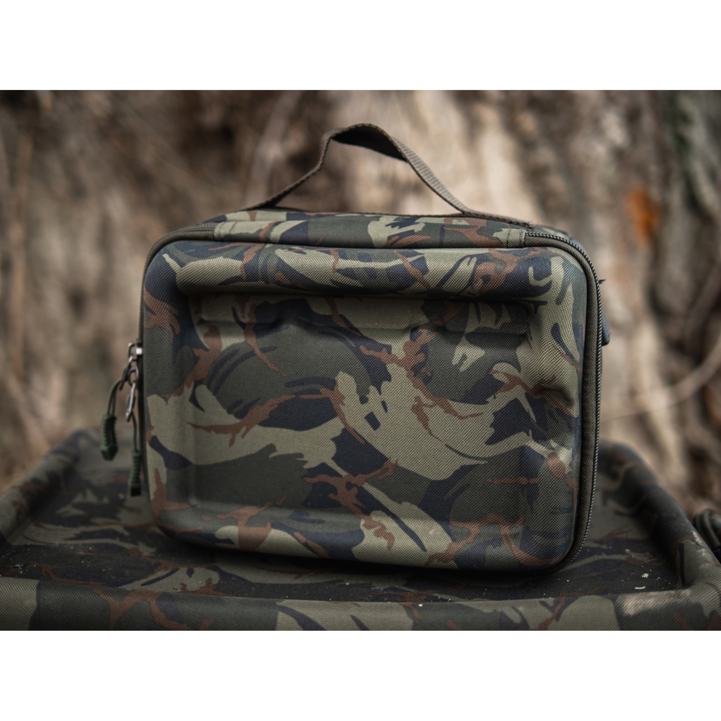 Praktické pouzdro do které bezpečně uložíte fotoaparát, powerbanku, světlo, čelovku a jinou elektroniku. Vrchní stolek lze využít jako stojánek na telefon. - Taška na elektroniku v kamuflážovém vzoru - Pevné víko z EVA materiálu - Vhodné pro nabíjení elektroniky a zboku průchozí kabel s USB koncovkou - Vnitřní nastavitelné přepážky pro různé typy elektroniky - Omyvatelné dno tašky - Rozměry: 25x18x14cm - Hmotnost: 0,7kg