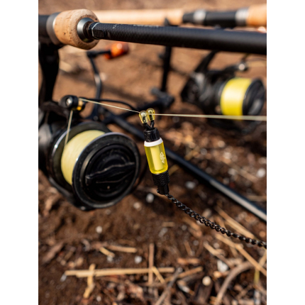 Kvalitní a stylový řetízkový indikátor, který je dodáván s dvěma výměnnými závažíčky, které lze různě kombinovat. V nabídce je široká škála barev, které vždy korespondují s úchytem vlasce. Výměnné závaží mají hmotnost: 2 g menší a 10 g větší, výhodou je že můžete závažíčka propojovat bez ohledu na jejich velikost, mají stejný průměr závitu. Závaží se dají samostatné dokoupit a jsou baleny po 3 ks. Zámek k zavěšení na vlasec je vyrobena z kvalitního plastu.