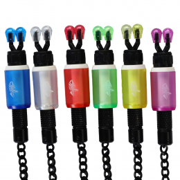 Kvalitní a stylový řetízkový indikátor, který je dodáván s dvěma výměnnými závažíčky, které lze různě kombinovat. V nabídce je široká škála barev, které vždy korespondují s úchytem vlasce. Výměnné závaží mají hmotnost: 2 g menší a 10 g větší, výhodou je že můžete závažíčka propojovat bez ohledu na jejich velikost, mají stejný průměr závitu. Závaží se dají samostatné dokoupit a jsou baleny po 3 ks. Zámek k zavěšení na vlasec je vyrobena z kvalitního plastu.