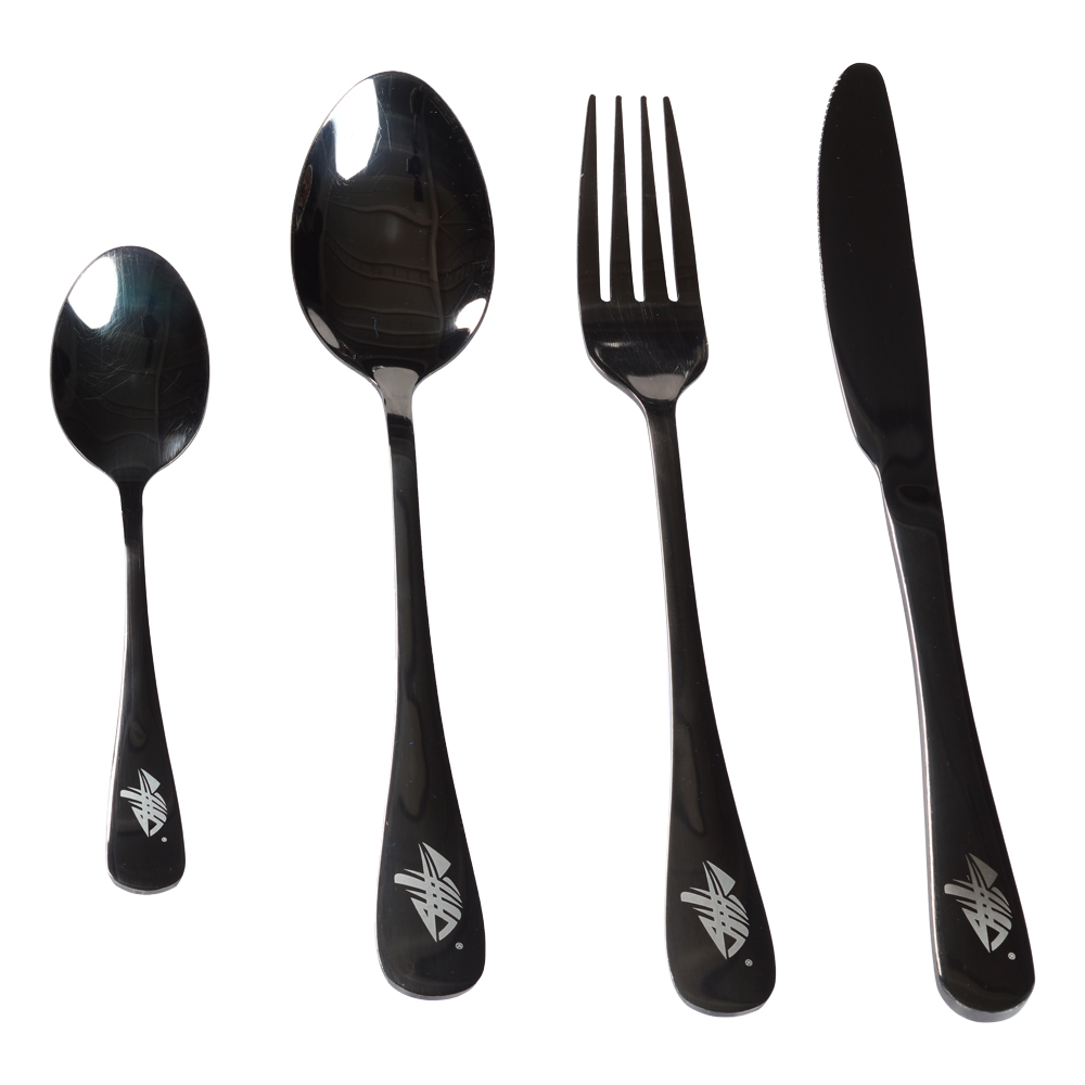 Praktická příborová sada, která je vyrobená z černé nerez oceli. Sada je dodávána v praktickém textilním obalu uzavíratelném na zip. Sada obsahuje: Polévkovou lžíci, vidličku, nůž a čajovou lžičku. Odkaz na video: http://www.youtube.com/watch?v=5194Sv8HLL4