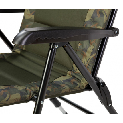 Celý popisJednoduchá, ale velmi stabilní a pevná konstrukce. Polohování opěrného systému je docíleno pomocí područek, které je jednoduché a trvanlivé. Polstrování v novém camo designu. Velkou a příjemnou výhodou je vysoká zádová opěrka, která činí 74 cm, tedy ideální i pro vyšší postavy. Sedačka je komfortní i co se týče šířkou, která číní 54 cm. Tedy pro silnější postavy zde je dostatek místa. Samotný posed je pak v rozměrech 54 cm x 44 cm. Plně dostačující jak pro krátké, tak i delší expedice. Sedačka je velmi komfortní, rychle složitelná a celkovou hmotností velmi příjemná. Samotná výška posedu je v základním nastavení 40 cm od země, lze tuto výšku navýšit až o 15 cm, pro případ terénu nebo delších nohou. Dalším atributem jsou packy do bahna, která jsou velmi robustní a odolná. Nechybí ani upínací zámek na aretaci nohou. Pomocí boční páčky lze jednoduše nastavit požadovanou délku jednotlivých nohou pro správné a pohodlné sezení.