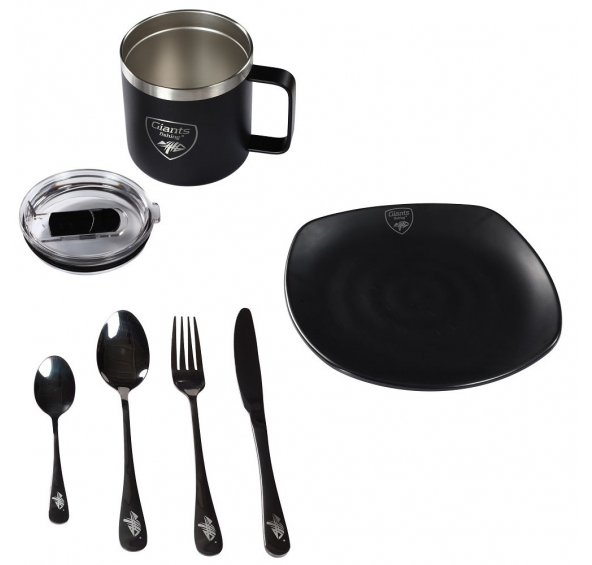 Popis produktu Giants fishing Set nádobí - termo hrnek + sada příborů + talíř