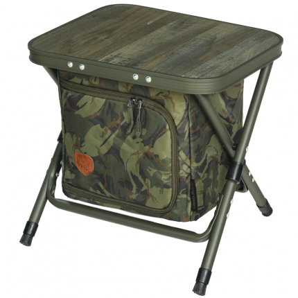 Praktický skládací stolek s integrovanou taškou na uložení různých věcí, který se skvěle hodí do vašeho bivaku či brolly.