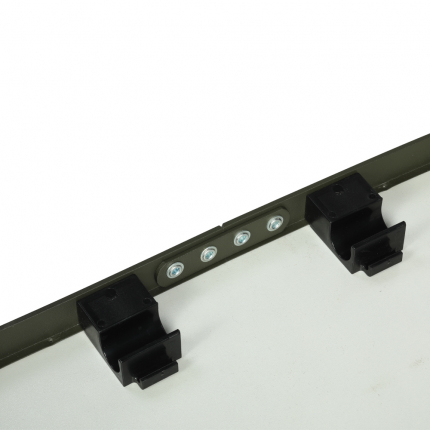 - Vylepšená konstrukce, která zaručí snadnější sestavení a malé přepravní rozměry. Čtyři výškově nastavitelné nohy, které mají na svých koncích protiskluzové packy. Transportní obal je všit ve spodní části tašky a díky tomu ho máte vždy připravený k zabalení. Konstrukce je vyrobena z hliníkových trubek o průměru 19 a 20mm. Textilní část je vyrobená z nepromokavé polyesterové tkaniny, která je v decentním kamuflážovém vzoru.