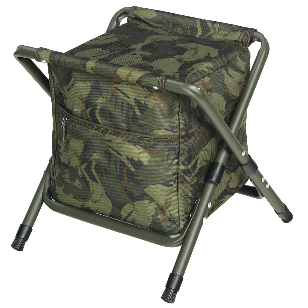- Vylepšená konstrukce, která zaručí snadnější sestavení a malé přepravní rozměry. Čtyři výškově nastavitelné nohy, které mají na svých koncích protiskluzové packy. Transportní obal je všit ve spodní části tašky a díky tomu ho máte vždy připravený k zabalení. Konstrukce je vyrobena z hliníkových trubek o průměru 19 a 20mm. Textilní část je vyrobená z nepromokavé polyesterové tkaniny, která je v decentním kamuflážovém vzoru.