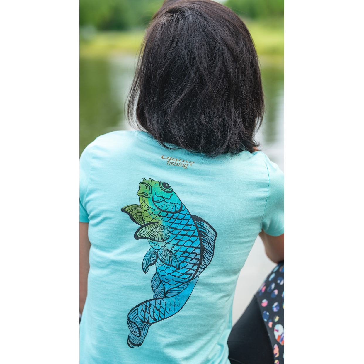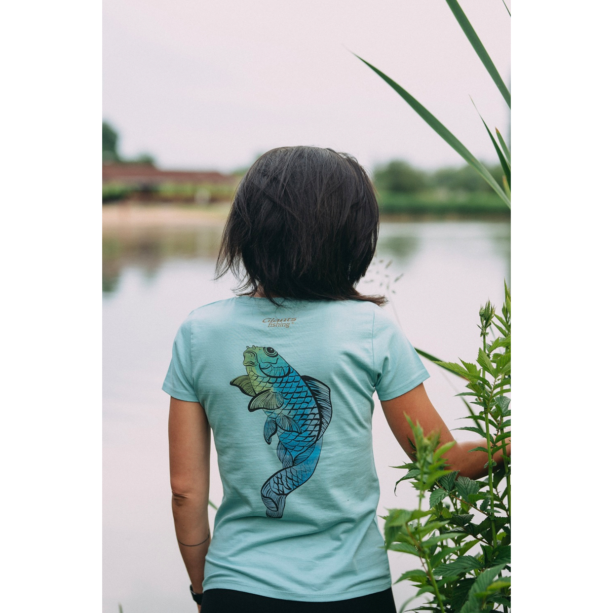 Kvalitní dámské tričko v zelené pastelové barvě s designem koi kapra na zádech. - Moderní střih - Materiál: Bavlna 100% - Velikosti: XS, S, M, L a XL