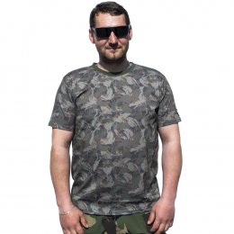 Kvalitní tričko v maskáčovém vzoru s decentním 3D logem značky na rameni.