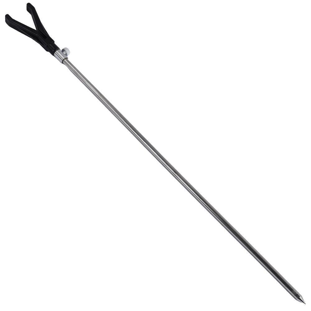 Řada kvalitních teleskopických vidliček, které jsou vyrobeny z nerez oceli, včerně hrotu, který zajistí snadné zapíchnutí do země. Model „V“ pro držení prutu v přední části. Vrchní část vidličky je pevně osazena držákem prutu. Požadovanou výšku nastavíte jednoduše pomocí závitu s maticí, která slouží k zafixování výšky rybářské vidličky. Délka: 50-90 cm Průměr vnější tyčky: 0,80 cm Průměr vnitřní tyčky: 0,45 cm