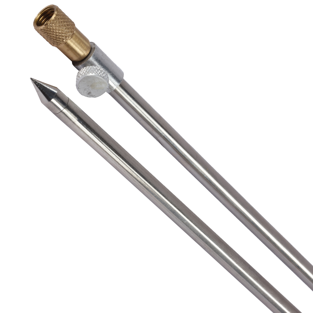 Řada kvalitních teleskopických vidliček, které jsou vyrobeny z nerez oceli, včerně hrotu, který zajistí snadné zapíchnutí do země. Tento model je zakončen závitem, který je určen k zašroubování elektronického hlásiče, nebo rohatinky či hrazdy. Požadovanou výšku nastavíte jednoduše pomocí závitu s maticí, která slouží k zafixování výšky rybářské vidličky. Délka: 50-90 cm Průměr vnější tyčky: 0,80 cm Průměr vnitřní tyčky: 0,45 cm