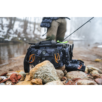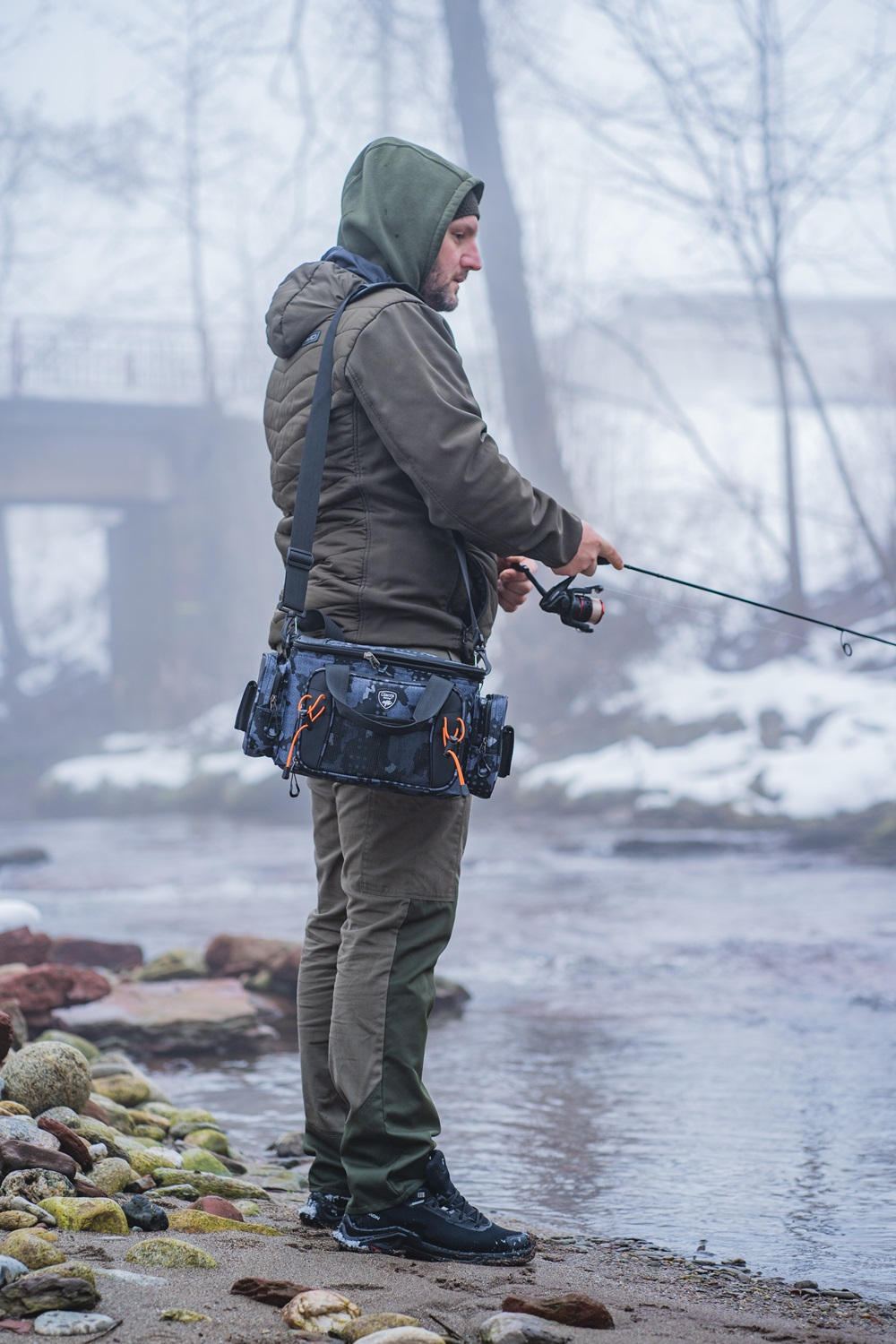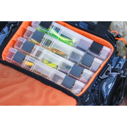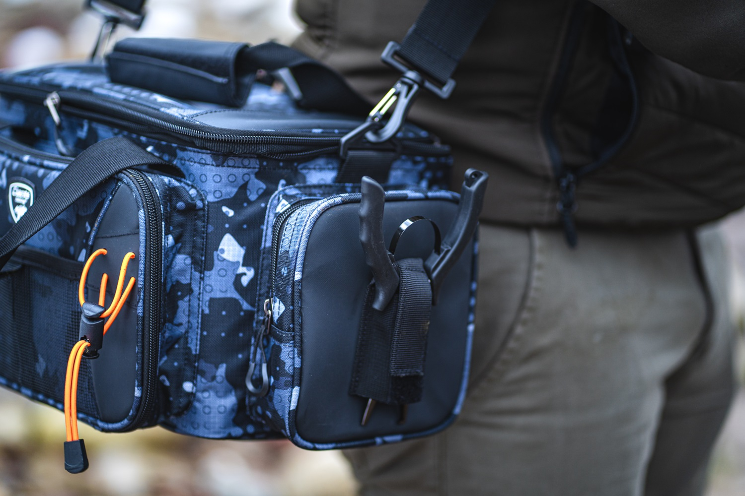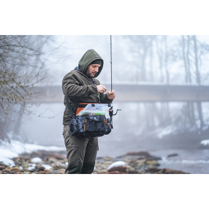 Větší vláčecí taška s popruhem přes rameno, která obsahuje čtyři větší krabičky na nástrahy. - Dlouhý ramenní popruh pro snadné přenášení - Dva držáky na kleště, které jsou umístěné na přední kapse - Čtyři plastové krabičky, jsou umístěny v hlavní části tašky - Atraktivní maskáčové provedení v šedé barvě - Vodě odolný nylonový materiál s označením 420D - Rozměry tašky: 41x25x20cm - Rozměry krabiček: 27,5x18x4,2cm - Hmotnost: 1,61kg