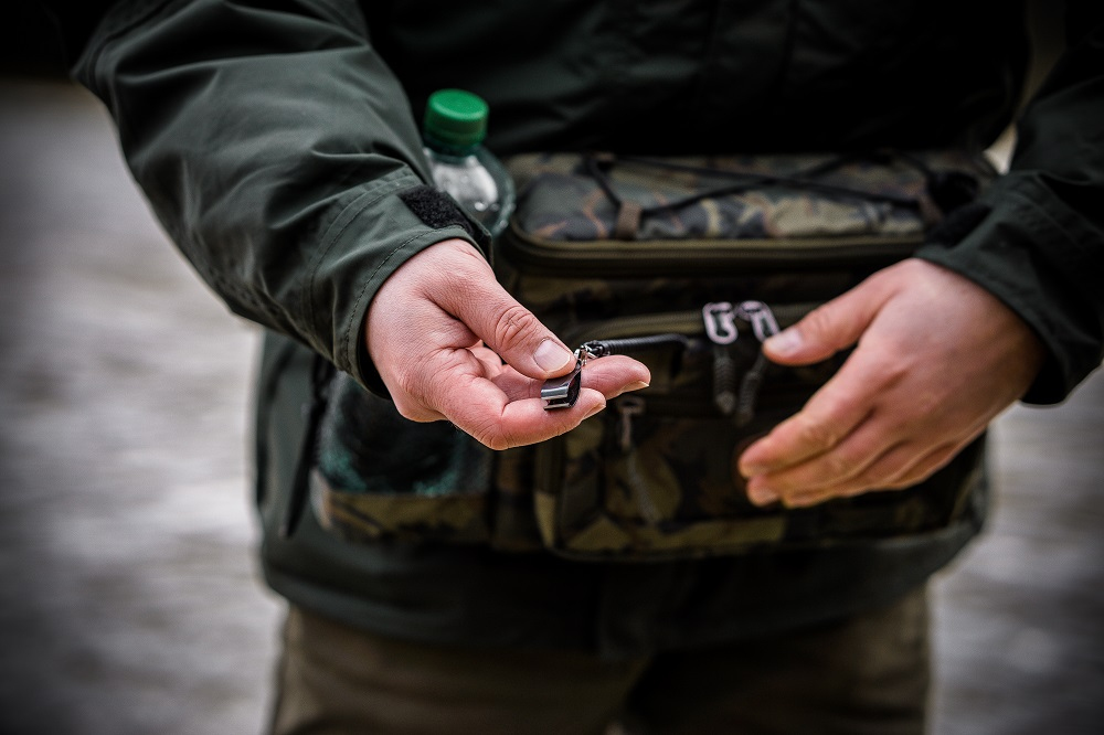Vláčecí ledvinka s integrovaným cvakátkem na vlasec, která obsahuje dvě plastové krabičky na nástrahy....