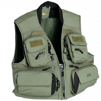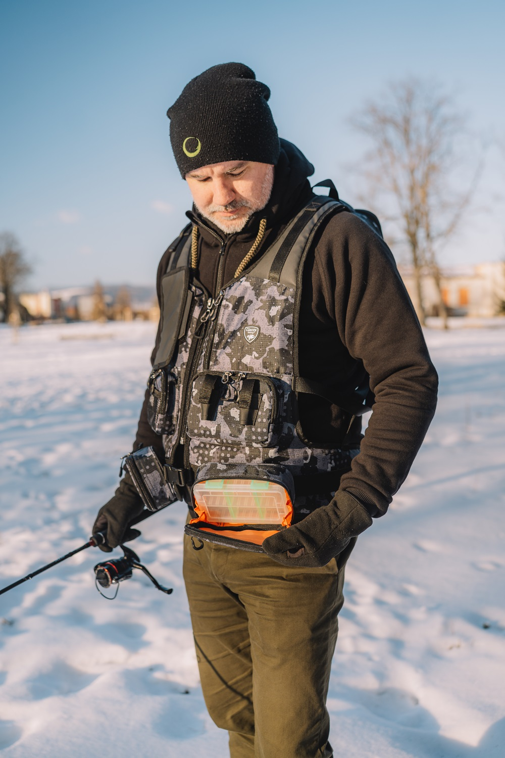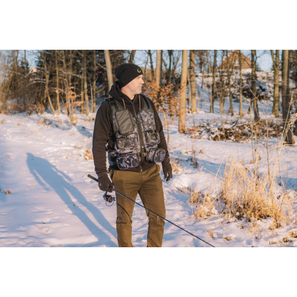 Speciální vesta pro lov přívlačí, která osahuje vše potřebné a v zadní části máte dokonce menší úložný prostor pro osobní věci a oblečení.