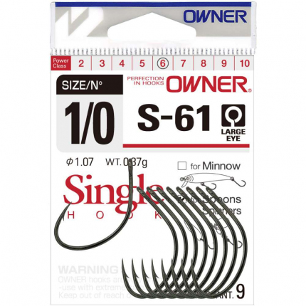 OWNER S-61 Ideální jednoháček pro nahrazení trojháčků (wobler, rotačka, plandavka) na sladkovodní a pobřežní pívlač. Je zejména vhodný do oblastí se spoustou trávy nebo vázek, které činí lov s trojháčky prakticky nemožný. Tyto jednoháčky také minimálně po