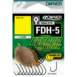 Owner FDH-5 Barbless Iseama s očkem - Black Chrome~Bezprotihrotový háček pro method feeder, navržený speciálně pro evropské revíry a závodní podmínky. Díky širokému zahnutí (wide gape) a krátkému, silnému ramínku zajišťuje spolehlivý a agresivní zásek i bez protihrotu.~Přímé očko umožňuje snadné vázání na šňůry a přispívá k rychlé reakci při záběru. Háček je vyroben z pevného drátu s chemicky ostřeným hrotem a dlouhou životností.~Vlastnosti:~· Bezprotihrotový (barbless)~· Chemicky ostřený rovný hrot~· Kovaná uhlíková ocel~· Povrchová úprava: Black Chrome~· Vhodný pro šňůry, monofil i fluorocarbon~· Ideální pro pelety, waftery a miniboilies~Skvělá volba pro method feeder na kapry a velké ryby tam, kde je použití bezprotihrotových háčků povinné....