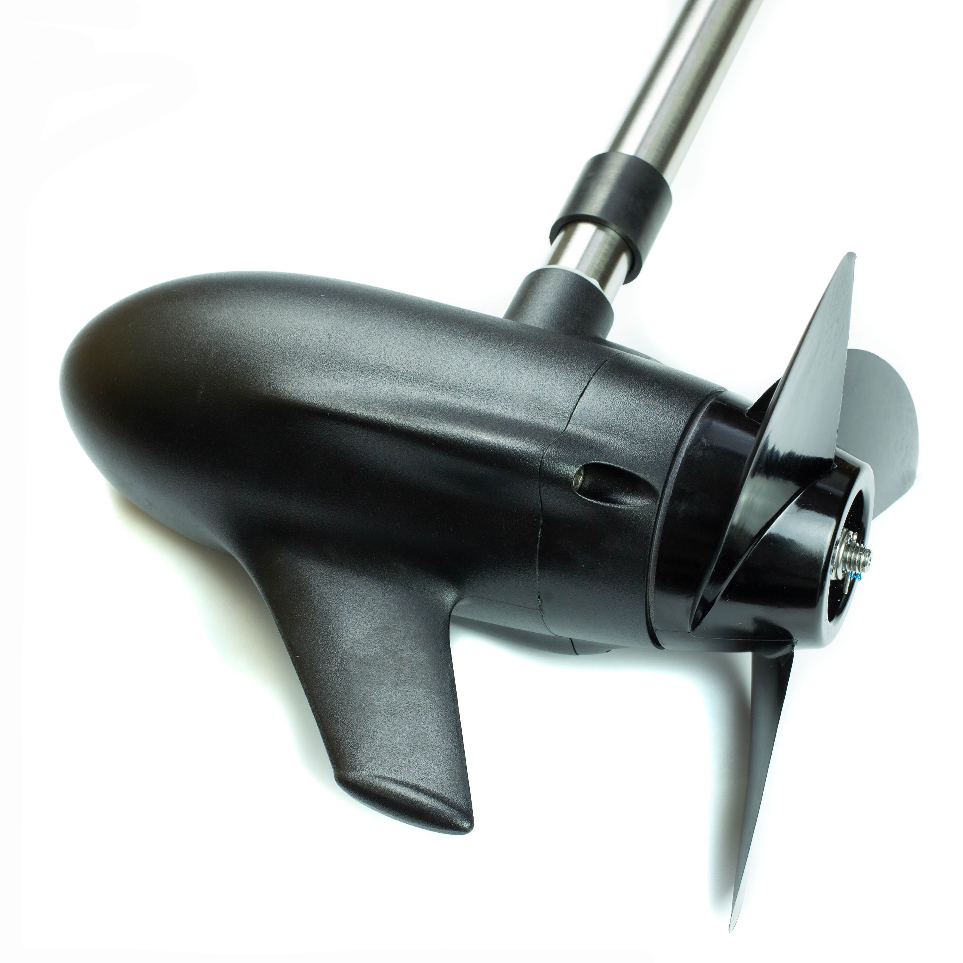 Celý popisHaibo M150 je vysoce kvalitní a velmi výkonný elektromotor. Je na jednu 12 V baterii, má tah na vrtuli 70 LBS, což z něj dělá nejsilnější 12 V motor na trhu, porovnatelný 3 HP motory. Takový výkon umožňuje vysoce efektivní Brushless (bezkartáčová) motorová jednotka a špičková hydrodynamická ergonomie. Tato technologie je velmi nákladná, proto se u elektromotorů této třídy používá jen zřídka. Její výhodou je však výrazně delší životnost a mnohem vyšší výkon, a to až o 15 - 20% oproti běžně používaným Brush (kartáčovým) motorům. Díky tomu se větší část celkového výkonu motoru mění na rotační sílu a méně se ztrácí jako teplo. Proto má 70 LBS Brushless motor srovnatelný výkon s běžnými 3 HP motory. U podobně silných motorů bylo nutné používat dvě propojené baterie, nebo jednu 24 V. Tento motor to zvládne s jednou 12 V. Přesto nemá nijak vysokou spotřebu. Při úsporném ježdění vydržíte jezdit i 5 – 7 dní na jednu 100A baterii, samozřejmě, při vyšším zatížení (vlny, delší vzdálenosti,…) ji vybijete za 2 až 4 dny. M150 má výborné zpracování, silnou třílistou vrtuli z pevného plastu, jištěnou maticí a závlačkou, nerezovou nohu o délce 91 cm, výsuvnou rukojeť a digitální číslicový displej, který informuje o stavu baterií. Dále bytelný držák na zadní zrcadlo lodi a také šikovné sklápění páčkou, které při přistávání zvládnete jednou rukou. M150 váží 11,5 kg, má plynulou regulaci rychlosti dopředu a dozadu a k tomu speciální SPORT mód pro rychlou jízdu. Obrovskou výhodou je též tichost, která je zcela nesrovnatelná s motory o podobném výkonu. Třešničkou na dortu je USB slot (dobíjení mobilu, GPS,…) s vodotěsnou zátkou, který najdete pod hlavou motoru.