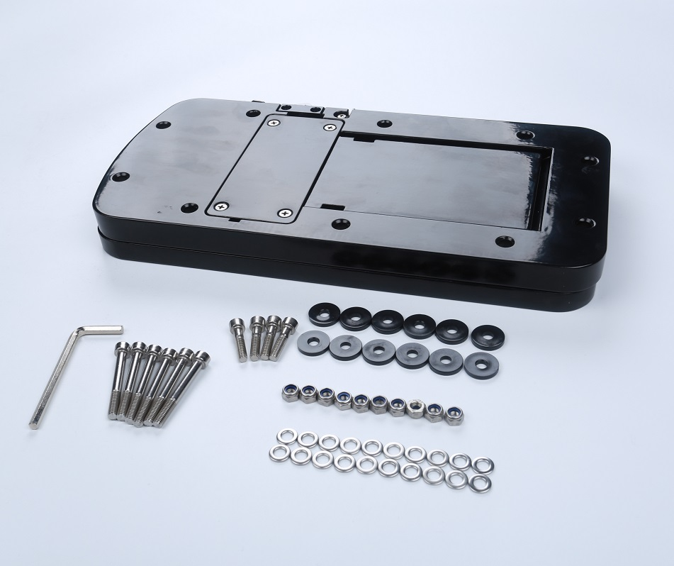 Rychloupínací montážní deska pro příďové motory. Snadná instalace, skvělá funkčnost a nerušivý černý design. Deska je zhotovena ze dvou hliníkových plátů, které se k sobě sešroubují pomocí 6ti šroubů a matek. K palubě pak přidělejte pomocí 4 dalších šroubů. Velikost_ 35 x 17,2 cm
