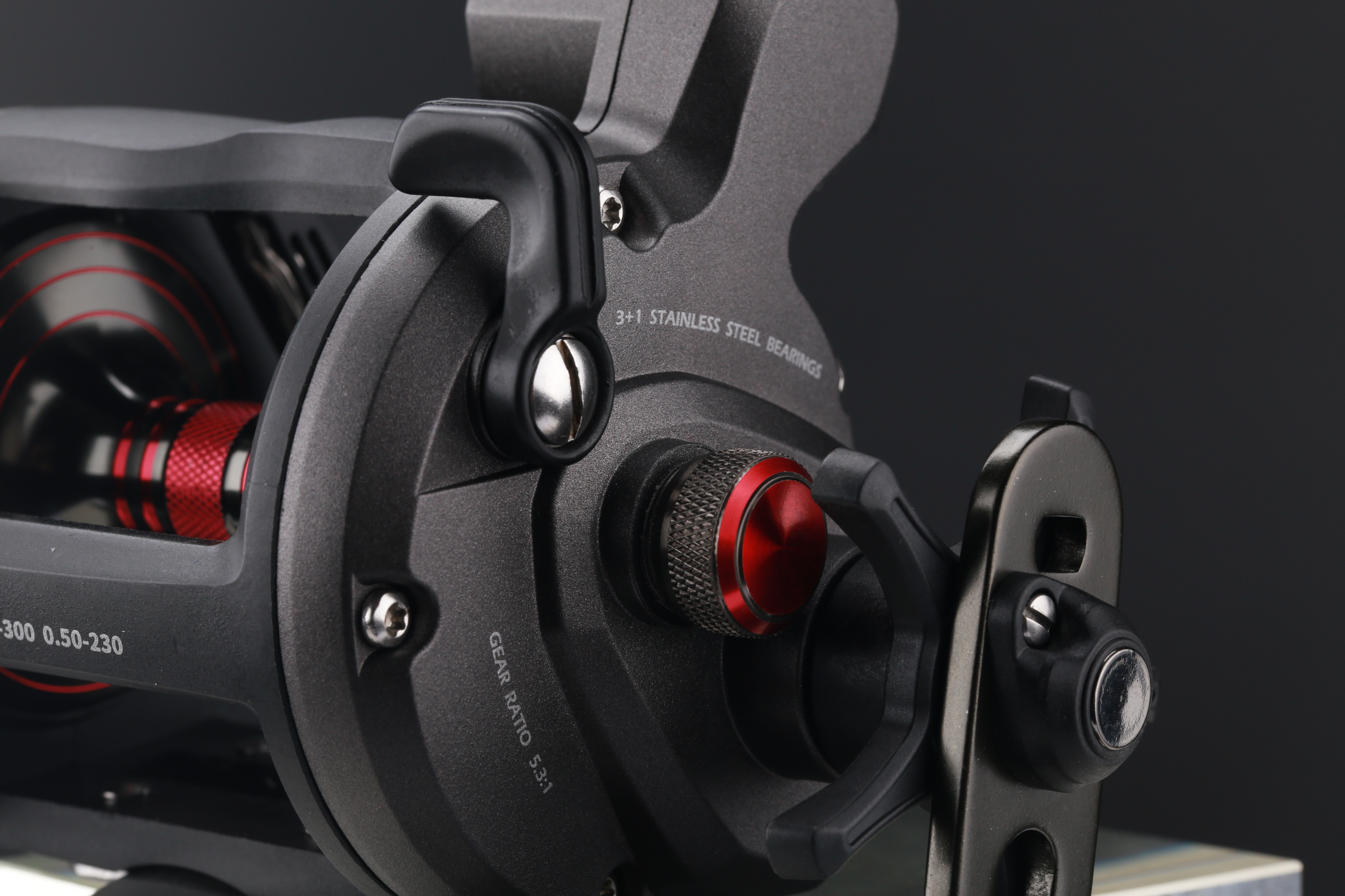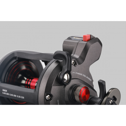 Haibo Hoister 300L LC (levoruká verze s řadičem a počítadlem v metrech) je mimořádně všestranný multiplikátor za přijatelnou cenu, který ocení jak sumcaři, tak rybáři lovící na moři a norských fjordech. Vyniká extrémně odolným rámem a postranicemi z lehkého grafitu, a spolehlivým Instant Anti-revesre systémem zpětného chodu. Prvotřídní brzdový systém zajišťuje odolnost při vysokém zatížení. Mechanický ukazatel (v metrech) vás informuje o délce odvinuté šňůry. Vysoce pevná hliníková cívka uložena na 3 pevných kuličkových ložiskách (+ 1 válečkové) z pravé oceli. Pojistka zpětného chodu zabezpečuje při záseku okamžitý kontakt s rybou. Hlavní ojnice je opatřena perfektní antikorozní úpravou. Velké pogumované madlo na klice se velmi pohodlně drží. Má certifikaci od renomované německé TÜV, kterou mohou získat jen ty nejkvalitnější produkty. Ložiska: 3+1 Hmotnost_ 627g Převod: 4,5:1 Kapacita_ 450m - 0,40mm