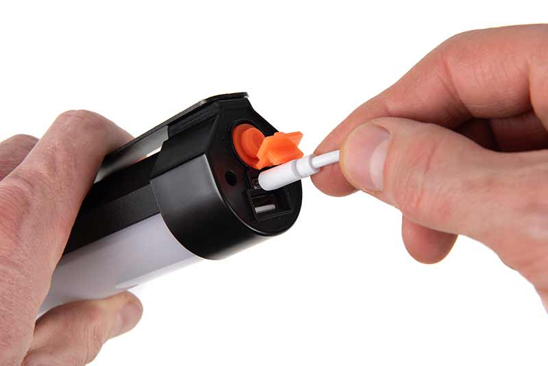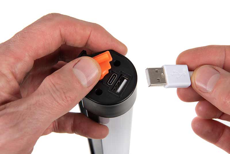 - Nabíjecí port USB-C a výstup USB pro použití jako nouzová powerbanka.