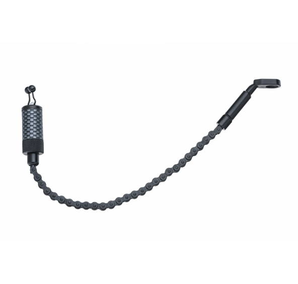 Luxusní signalizátor záběru s masivním řetězem a ostatními částmi z oceli v matné černé barvě.
