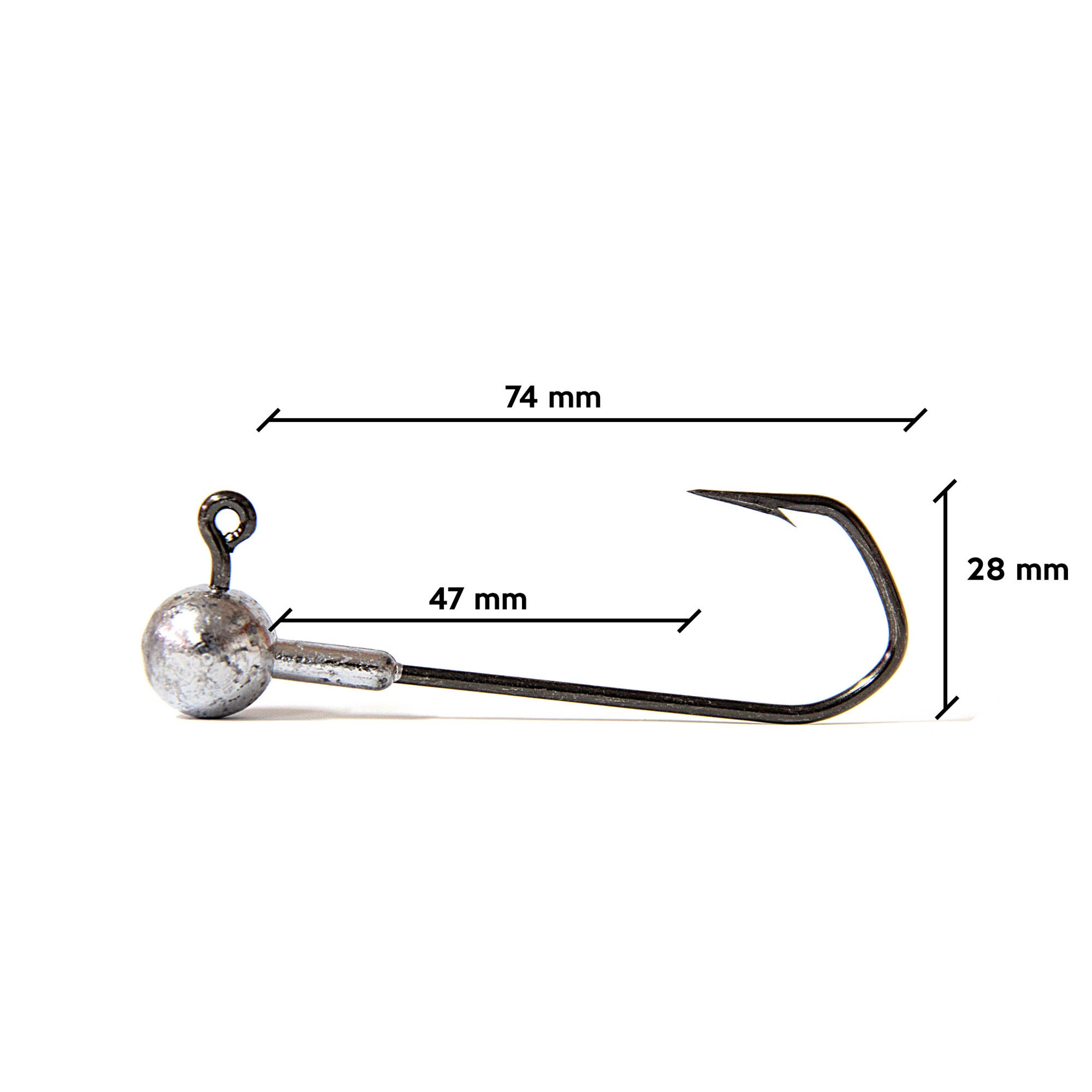 Jigová hlava je vyrobena ze silného a drátu, který vydrží velký tlak. Ostrost háčku se speciálně brousí po hraně a tím vytváří hranaté ostří. Tím to se stává velmi účinnou zbraní při lovu na přívlač. Háček nerezaví a je dobrou volbou pro lov sumců nebo velkých štik. Gramáže : 15, 30, 50, 65, 90g. Popis : Velikost háčku : 10/0 Balení : 1ks Materiál : Olovo