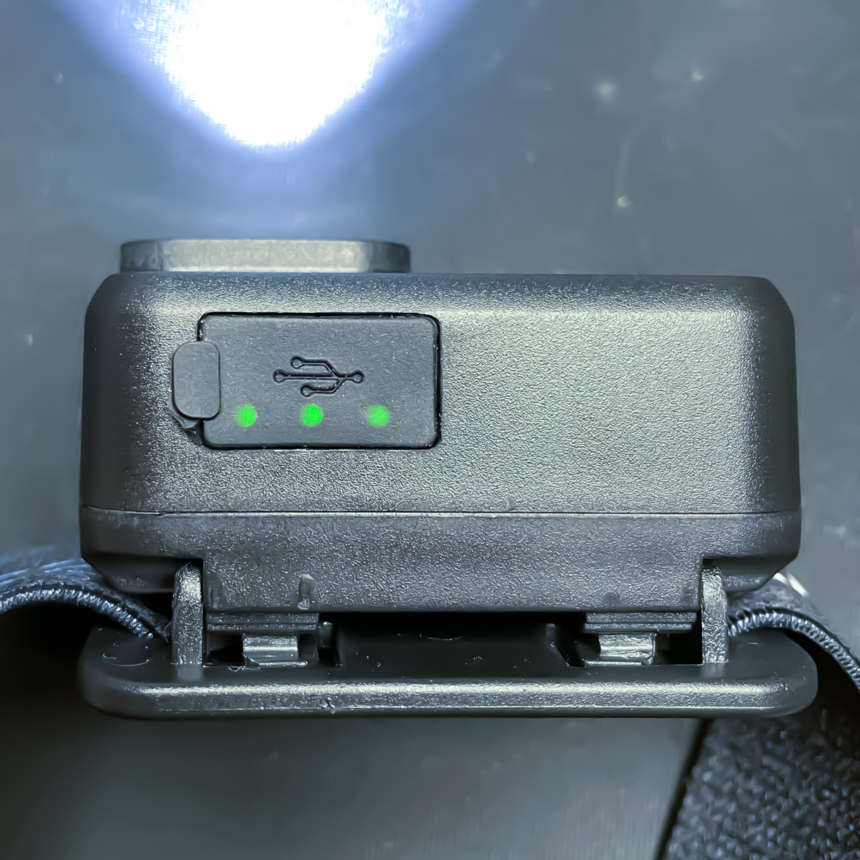 Špičková nabíjecí čelovka s výkonnou bílou a zelenou LED.