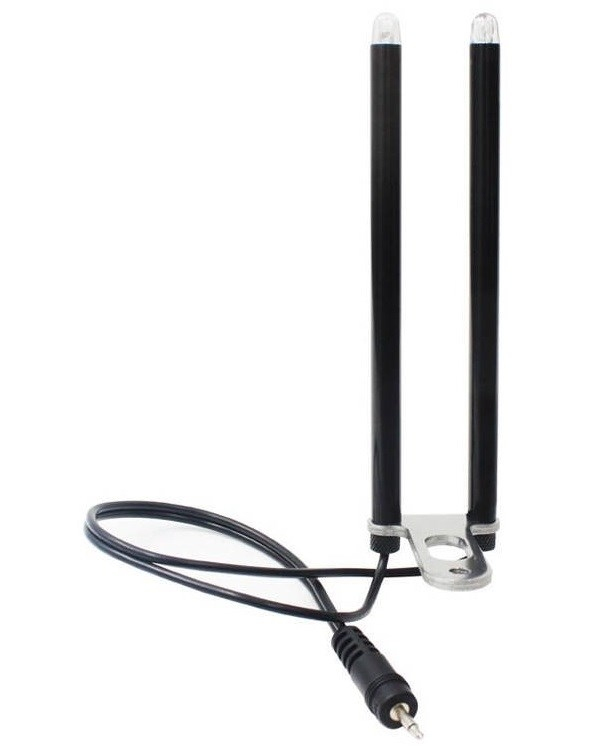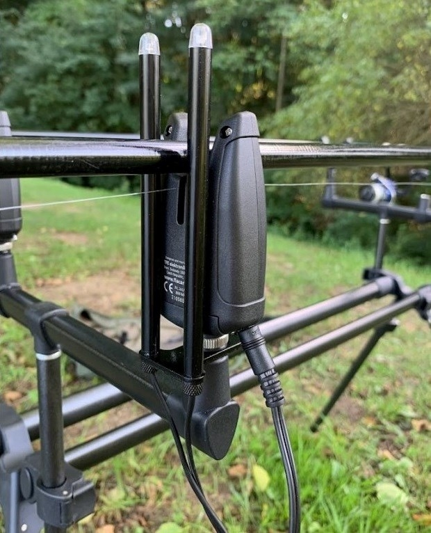 Brání vyskočení prutu ze signalizátoru při špatném počasí, razantnějším záběru či záběru do strany. Navíc při propojení se signalizátorem pomocí konektoru JACK 2,5mm, se po záběru na uších rozsvítí horní LED diody. Technické parametry_ Výška: 132 mm Rozteč pro prut_ 18 mm Barva LED_ podle zakoupené varianty - modrá, červená, zelená, žlutá Barva vidlic_ černá Barva podstavy_ stříbrná Konektor_ JACK 2,5mm (standard pro většinu signalizátorů záběru na trhu, plus pól na středu)