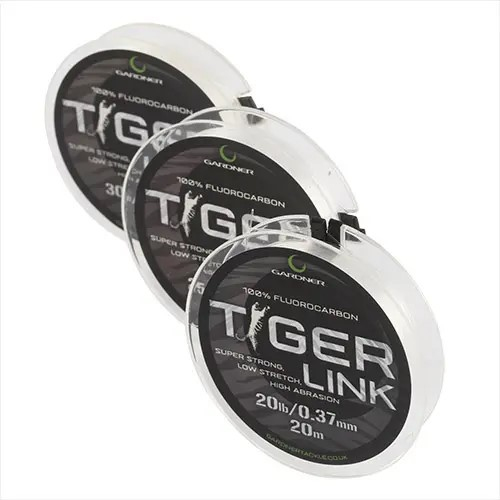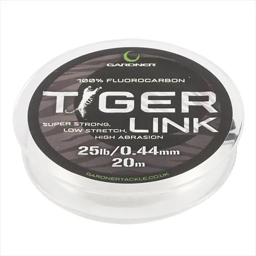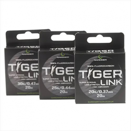 Tiger Link je skutečný 100% fluorocarbonový návazcový vlasec, který je ve vodě prakticky neviditelný. Jedná se o polymer, který poskytuje výjimečnou odolnost proti oděru a pevnost v uzlu. Tiger Link je odolný vůči UV záření, má dlouhou životnost a dobrý poměr cena/výkon. Specifikace: - Tiger Link lze dokonale narovnat pevným tahem - rychle potápivý - zlepšuje prezentaci návnady - vynikající pevnost uzlů se širokou škálou možností uzlů - perfektní pro tvoření návazců jako jsou Ronnie Rigs, Hinged Stiff Rigs a pro vázání D Rigs - k dispozici v 20lb, 25lb a 30lb - návin 20m v cívkách - vynikající odolnost proti oděru - průměr: 20 lb/0,37 mm, 25 lb/0,44 mm, 30 lb/0,47 mm