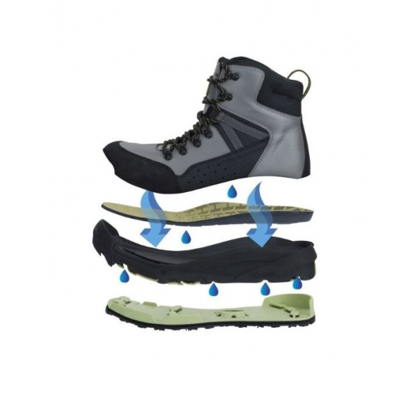 - integrované odvodňovací porty v systému H-Lock odvedou přebytečnou vodu, čímž dojde k odlehčení boty a usnadnění brodění