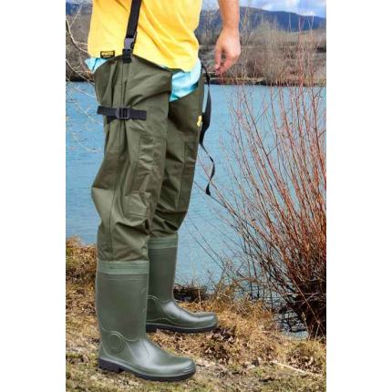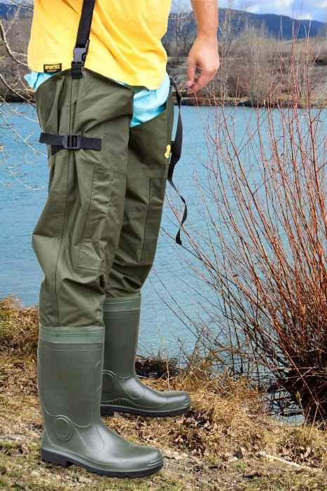 Holínky do rozkroku na brodění mají tlustou podrážku a pevnou gumovou botu která zabezpečuje dokonalou stabilitu i na kluzkém terénu....