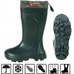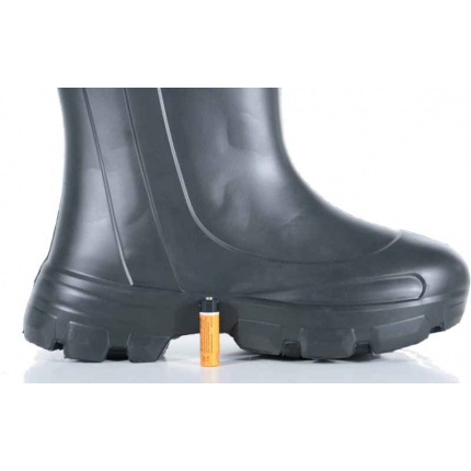 Velmi lehké EVA holínky které váží jen 1000g, nesrovnatelně lehčí než holínky vyrobené z PVC nebo gumy. Vysoká izolace je zajištěna díky vysoce kvalitnímu PVA materiálu ve kterém se nacházejí vzduchové bubliny. Vaši nohu udrží v teple a suchu až do -70 ° C. Vyjímatelná vložka je vyrobena z třívrstvého materiálu (Hliníková fólie + 9mm plsť + netkaná textilie). Holínky lze nosit celoročně a to bez nepříjemného pocitu vymačkání. Na vrchní části se nachází polyesterových stahovací manžeta která zabraňuje úniku tepla z holínek. Jednoduše a snadno se čistí.