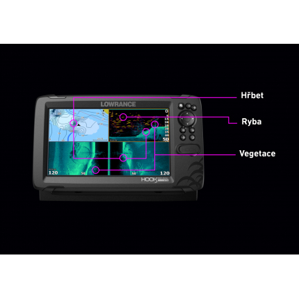 Zcela nový HOOK Reveal poskytuje silný výkon s osvědčenými nástroji pro vyhledávání ryb, včetně automatického ladění sonaru, SideScan * a DownScan Imaging ™ a nyní nově i FishReveal ™, který usnadňuje orientaci v zobrazení ryb kombinací výhod sonaru Lowrance CHIRP a DownScan Imaging ™ na jedné obrazovce.