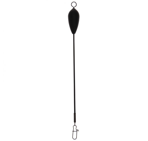 Tento plovák na tyčce se používá v případě, kdy potřebujete, aby vám vlasec či šňůra vedli nade dnem. Očkem protáhnete šňůru a na karabinku připevníte závaží.