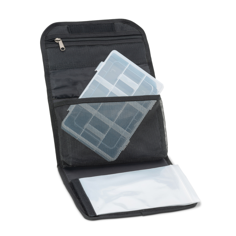 Malé, kapesní pouzdro pro uložení vybavení a materiálu pro výrobu návazců a samozřejmě také prostor pro jejich uskladnění. Součástí je také plastová krabička, do které si můžete své věci přehledně srovnat. To vám u vody ušetří spoustu času, který můžete věnovat rybaření.
