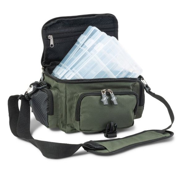 Chodíte na pstruhy či okouny, máte rádi lehké zavazadlo, ale přesto máte spoustu nástrah a nevíte, kam a jak je uložit. Máme pro vás řešení. Přesně pro takové případy se skvěle hodí nová taška Buddy Bag. V hlavní přihrádce jsou tři boxy na nástrahy. K dispozici jsou také tři vnější kapsy, do kterých se vejdou například návazcové fluorocarbony. Ve víku je také úložný prostor. Celá taška se nosí velmi pohodlně, má polstrovaný ramenní popruh a můžete si ji přichytit k pásku, takže se vám nebude všude motat.