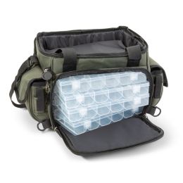 Přívlačová taška na nástrahy s mnoha vnějšími kapsami, do kterých můžete dát krabičky, peán, metr, povolenku a mnoho dalšího. V ceně jsou i čtyři plastové boxy na nástrahy, které jsou vyrobeny tak, aby přesně zapadly do hlavní kapsy.
