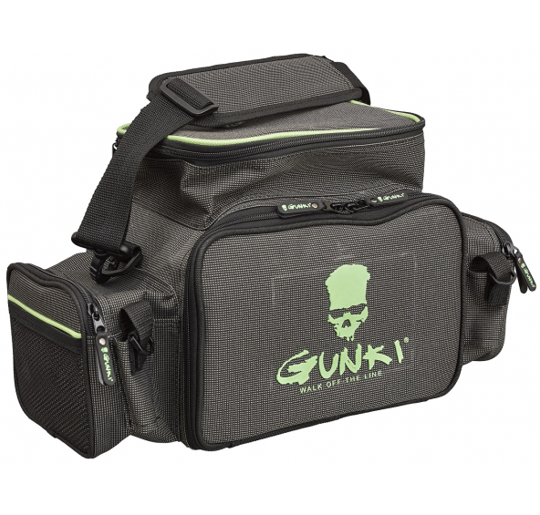 Taška na přívlač vyrobená z pevné látky 600D s kvalitními zipy. Hlavní komora s otevíráním zepředu obsahuje 3 krabice na nástrahy (27x18x4,5 cm). Horní kapsa na zip s menší krabičkou (20x13,5x4 cm). Dvě postranní kapsy na zip a dva držáky kleští. Nastavitelný polstrovaný popruh přes rameno pro snadné přenášení. Rozměr: 27x20x18 cm.
