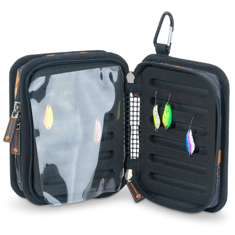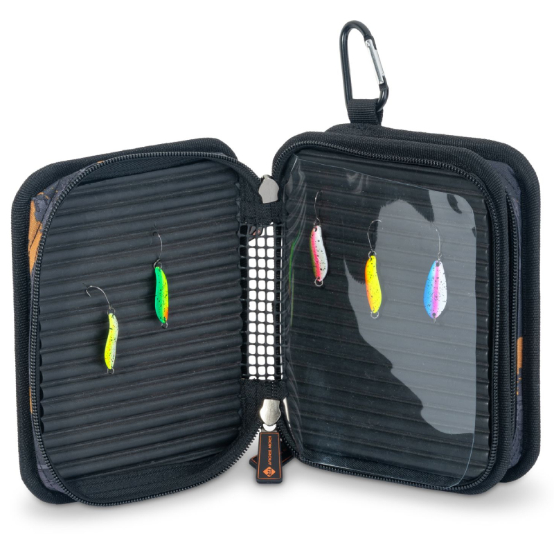 Celý popisIron Trout Spoonability je praktické pouzdro navržené speciálně pro plandavky, které pojme až 150 kusů a udržuje je dokonale uspořádané. Uvnitř se nacházejí čtyři kvalitní EVA desky s přesnými výřezy, které bezpečně drží jednotlivé plandavky na svém místě. Dvě hlavní vnitřní sekce jsou navíc osazeny pevnou čirou fólií, díky níž máš vždy perfektní přehled o obsahu.