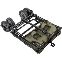 Tento inovativní transportní vozík je určen na objemnější zátěž. > Vyrobeno ze silného Oxford 600d potaženého PVC > Robustní trubkový ocelový rám > Sklopná integrovaná tvrdá spodní deska > 4 pevná gumová kola 17,5x3,5 cm > přední kola jsou otočná o 360 ° zadní kola se neotáčí > brzda na obou předních kolech > Silná teleskopická tažná / tlačná rukojeť: 53 až 87 cm. > Silná ergonomická rukojeť > Nosnost: 70 kg > Nákladový prostor: 74x49x28,5cm > Rozložená velikost: 81x51x71cm > Transportní rozměry: 54x18x74cm > Hmotnost: 8,54 kg