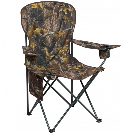 Zcela nová řada sedaček v novém elegantním CAMO provedení z "Oxford" textilie 600D, který je nově potažený PVC. Křeslo vyšší třídy od belgické firmy JAF Capture. Potah je odolný vůči povětrnostním vlivům a snadno omyvatelný. Praktická sedačka z boku s praktickou kapsou a organizérem. Sedačka je dodávána v tašce. Sklopný rám o průměru trubek 16 mm Široké opěrky na ruce a držák na dva nápoje Rozměry sedátka: 52š x 60h cm Výška sedátka: 48 cm Výška opěrky zad od země: 103 cm Nosnost: 110 kg