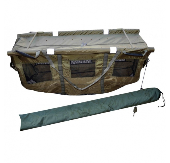 Kvalitní vážící taška z polzesteru 210D, ktweré je potažen PVC Taška má plováky po celé délce, které udržují celou tašku na hladině. Důmyslně navržené otvory v tašce udržují spolehlivý průtok vody a tím i dostatek kyslíku pro ulovenou rybu a tmavější vyhotovení udrží rybu co možná nejvíce klidnou. Obouručné madla usnadňují manipulaci i s těžkou rybou. Univerzální pomocník, který Vám pomůže rychle a snadno rybu zvážit a bezpečně pustit zpět do vody. - dvoucestný zip s bezpečnostným klipem - zahnutá spodní část pomáhá udržet rybu vycentrovanou během vážení - lemy zipu pro ochranu uchované ryby - zesílené švy na nejvíce namáhaných místech - 3 m kotvící šňůra uložená v externí kapsičce - dodáváno v nylonovém přepravním pouzdře Rozměry: 130 x 40 cm