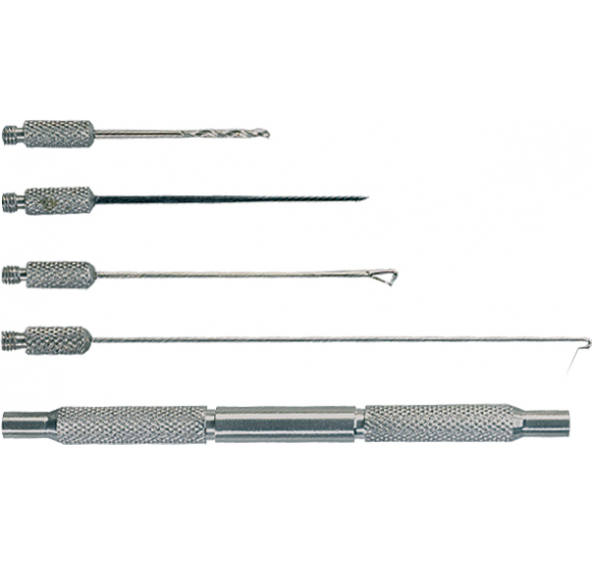 Kombinace jehly (tři různé druhy) a vrtáku na boilies v nerezovém provedení.