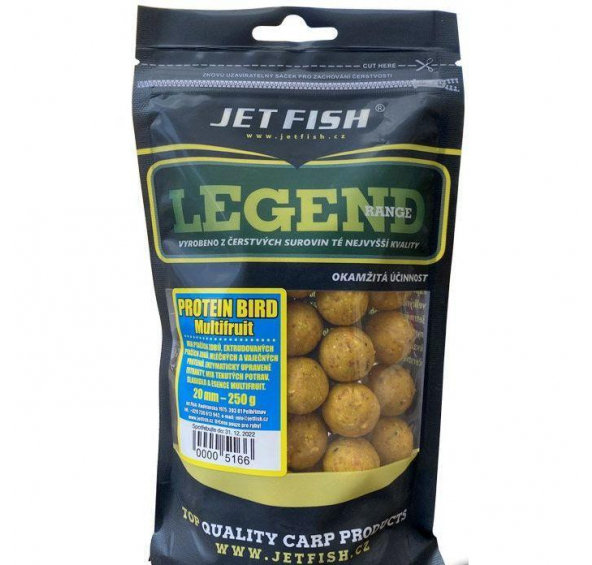 Popis produktu Jet Fish Boilies Rozpustné Protein Bird Multifruit 20mm 250ml