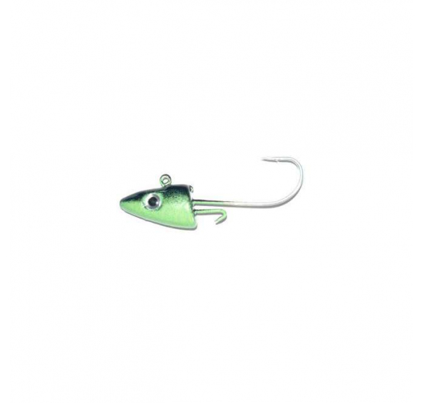 Jigová hlavička tvaru "rybí hlava" v nejčastěji používaných gramáží 35, 50, 60 gramů, barveno vypalovacími práškovými barvami, 3D oči pevně vlepené do barvy, jig háčky 6/0 Eagle Claw (USA), perfektně pasují k riperům MYSTIC..